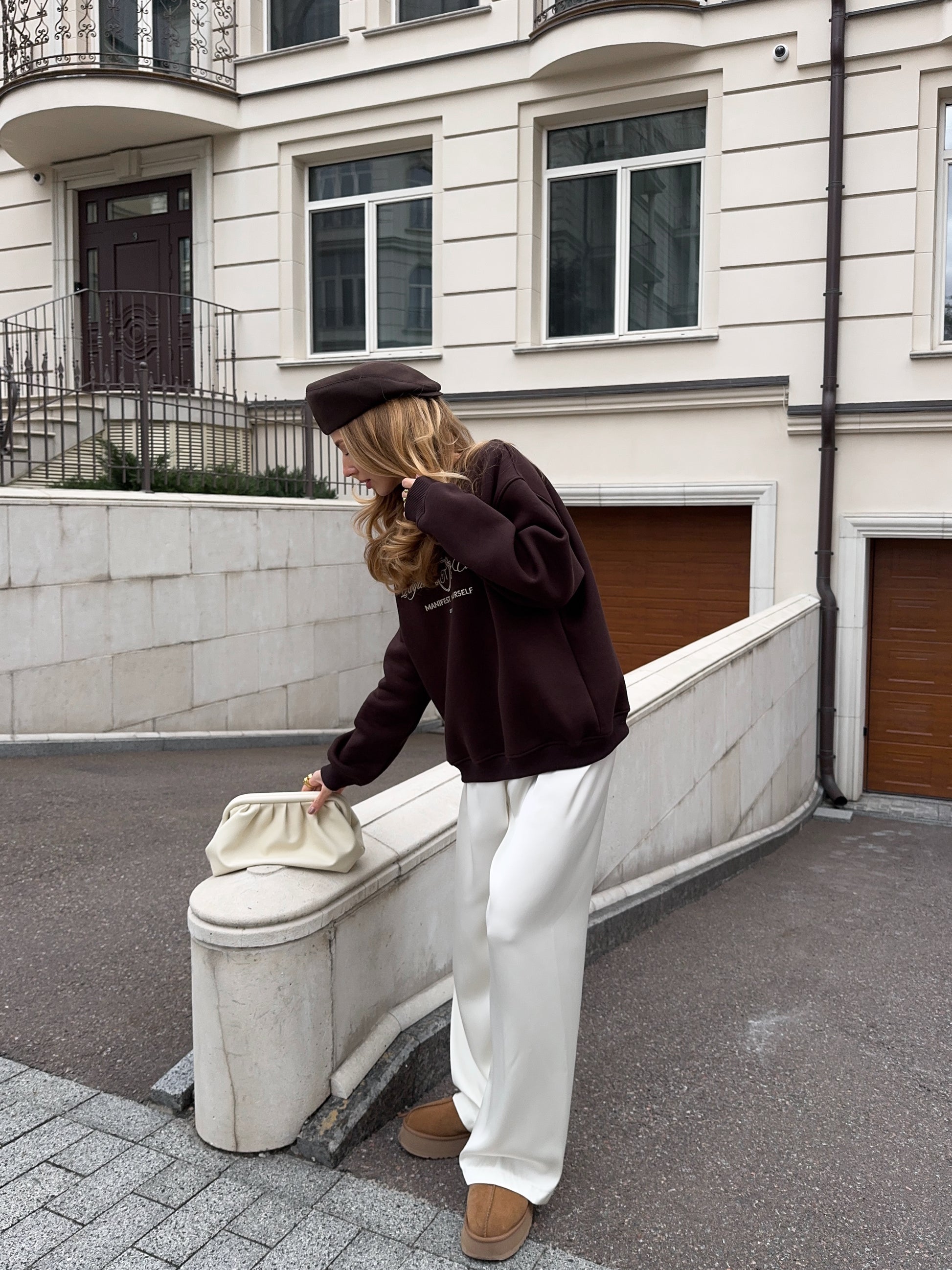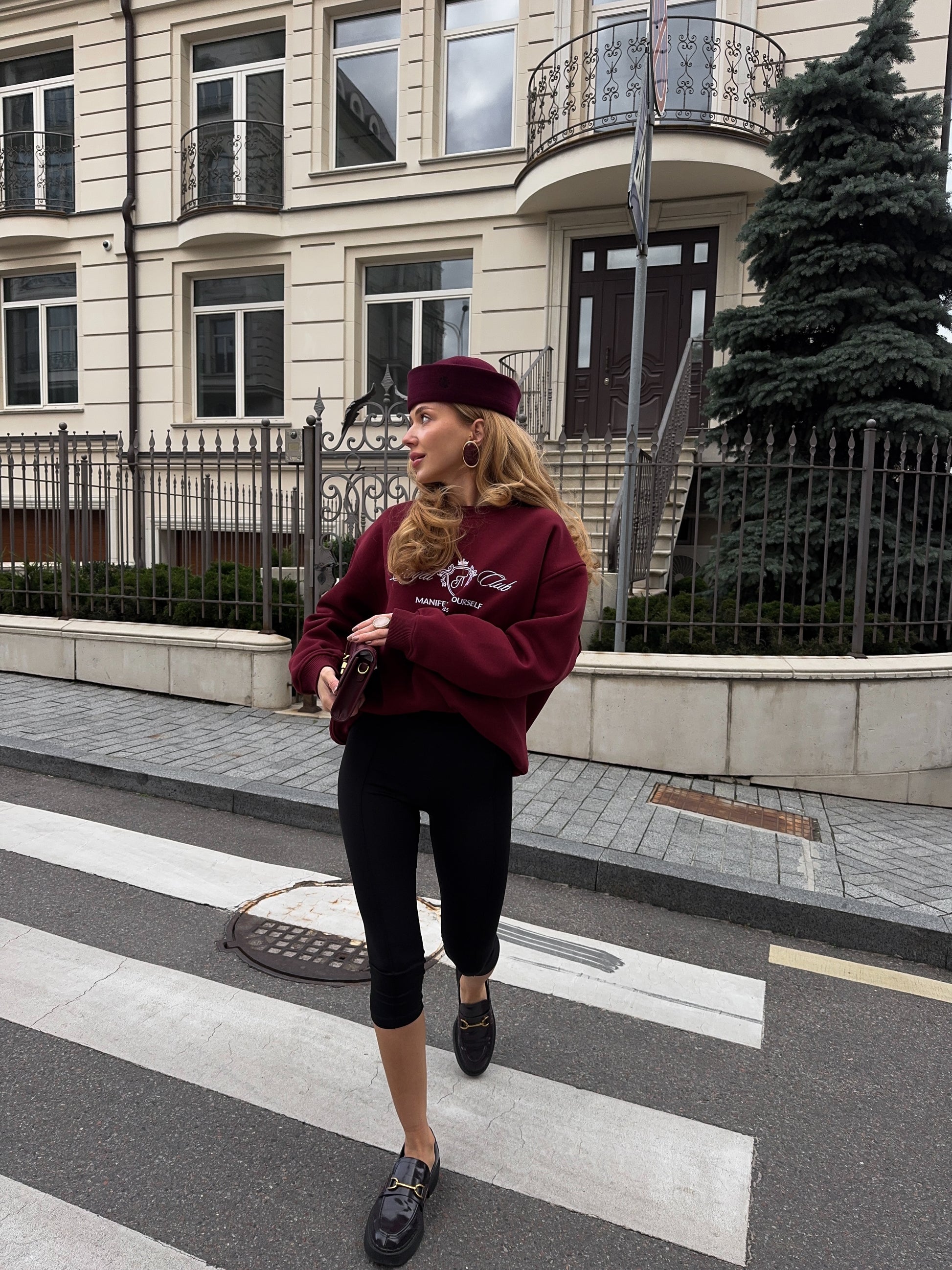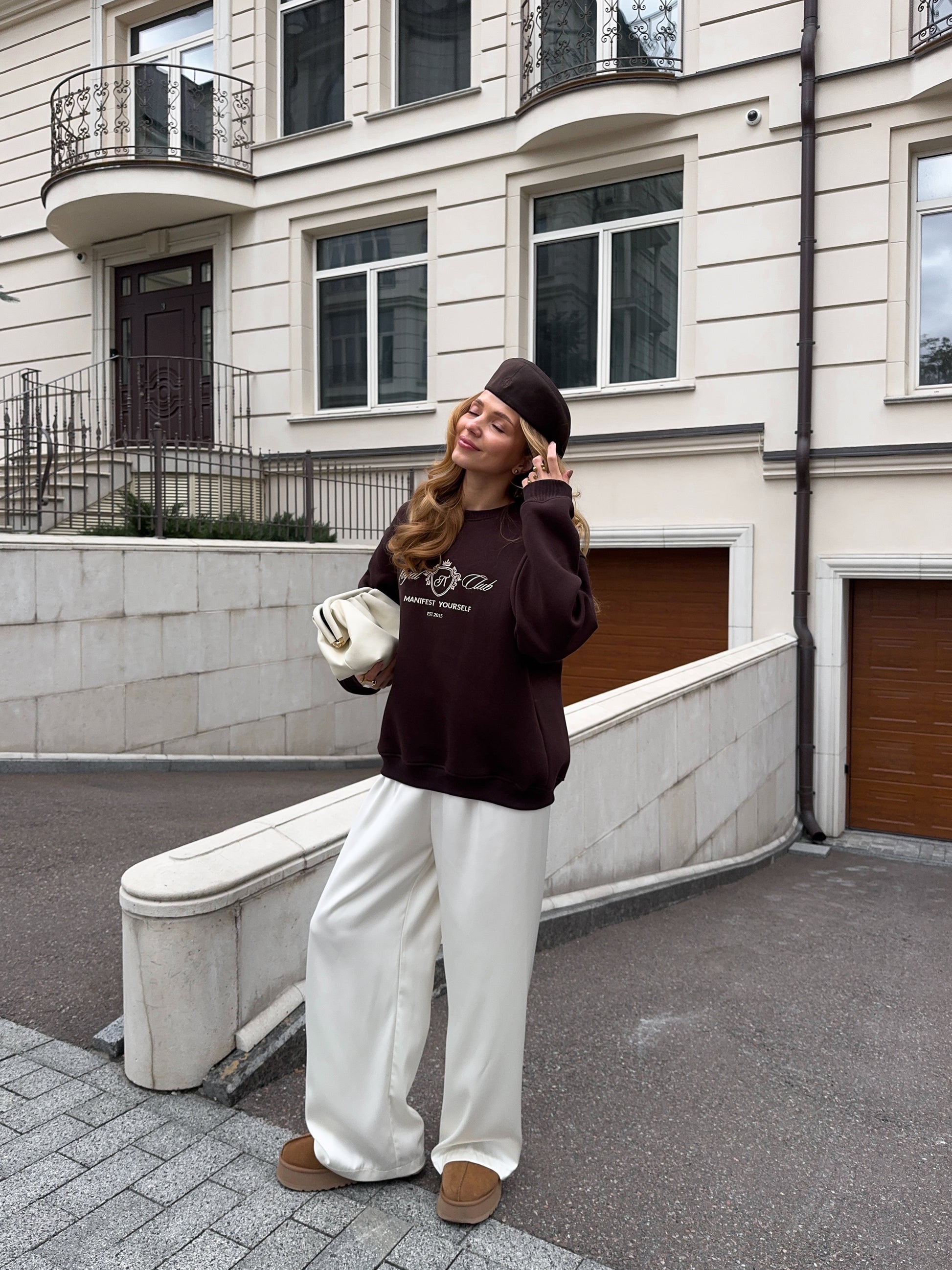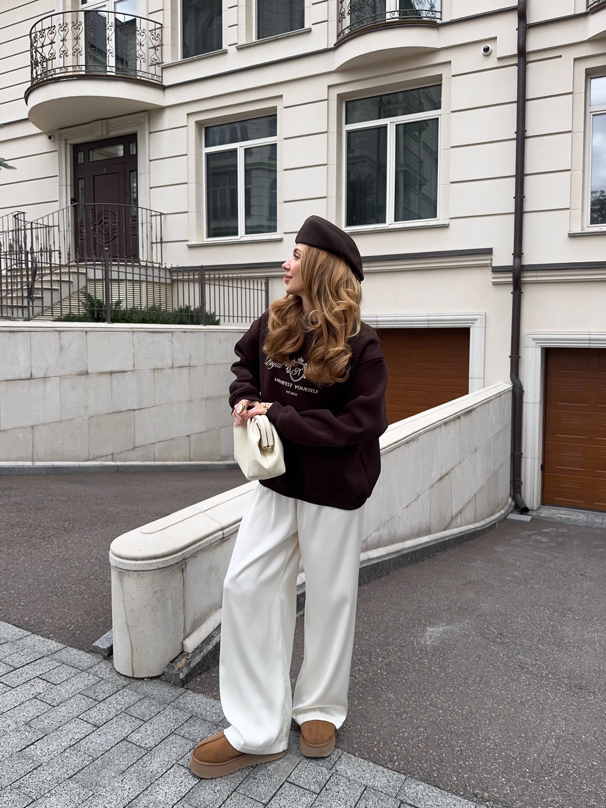 Стильний oversize світшот із обʼємною вишивкою Royal Club – Manifest Yourself створений для комфорту та елегантності у повсякденному стилі.