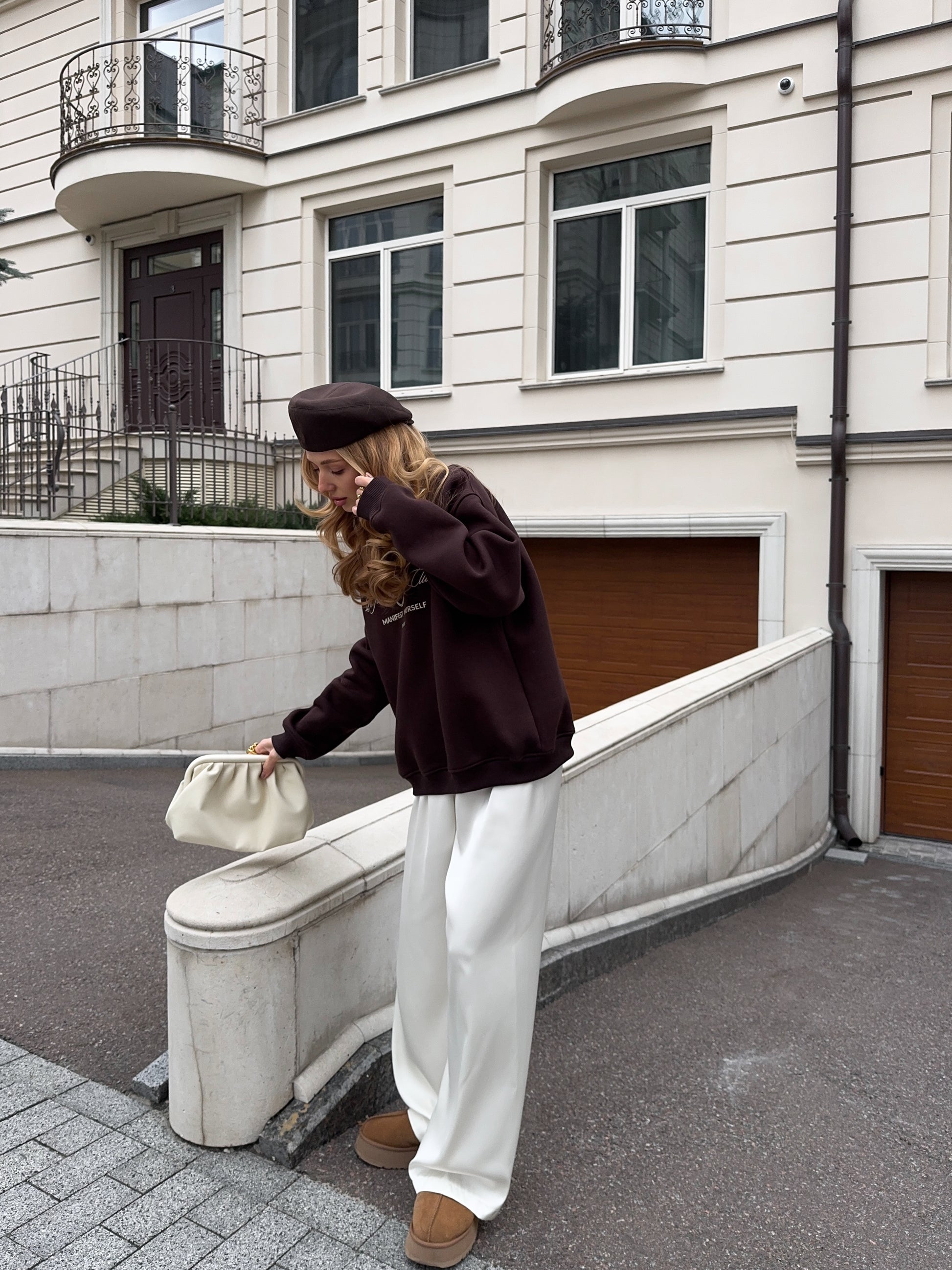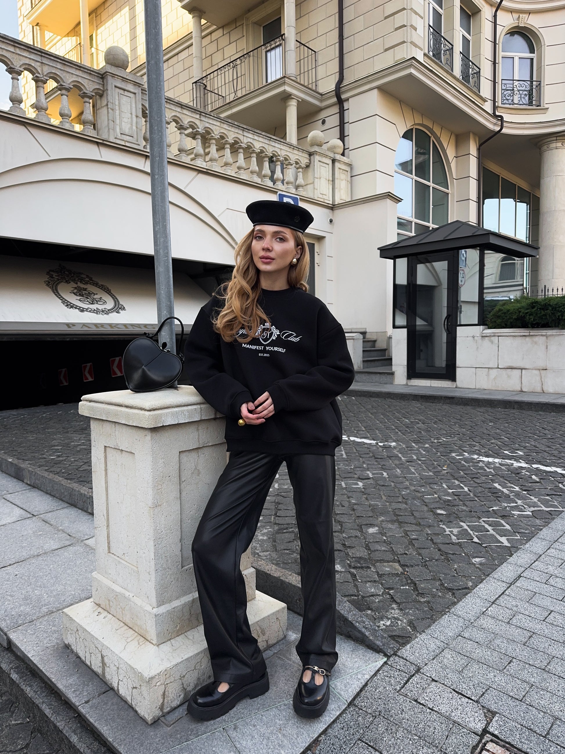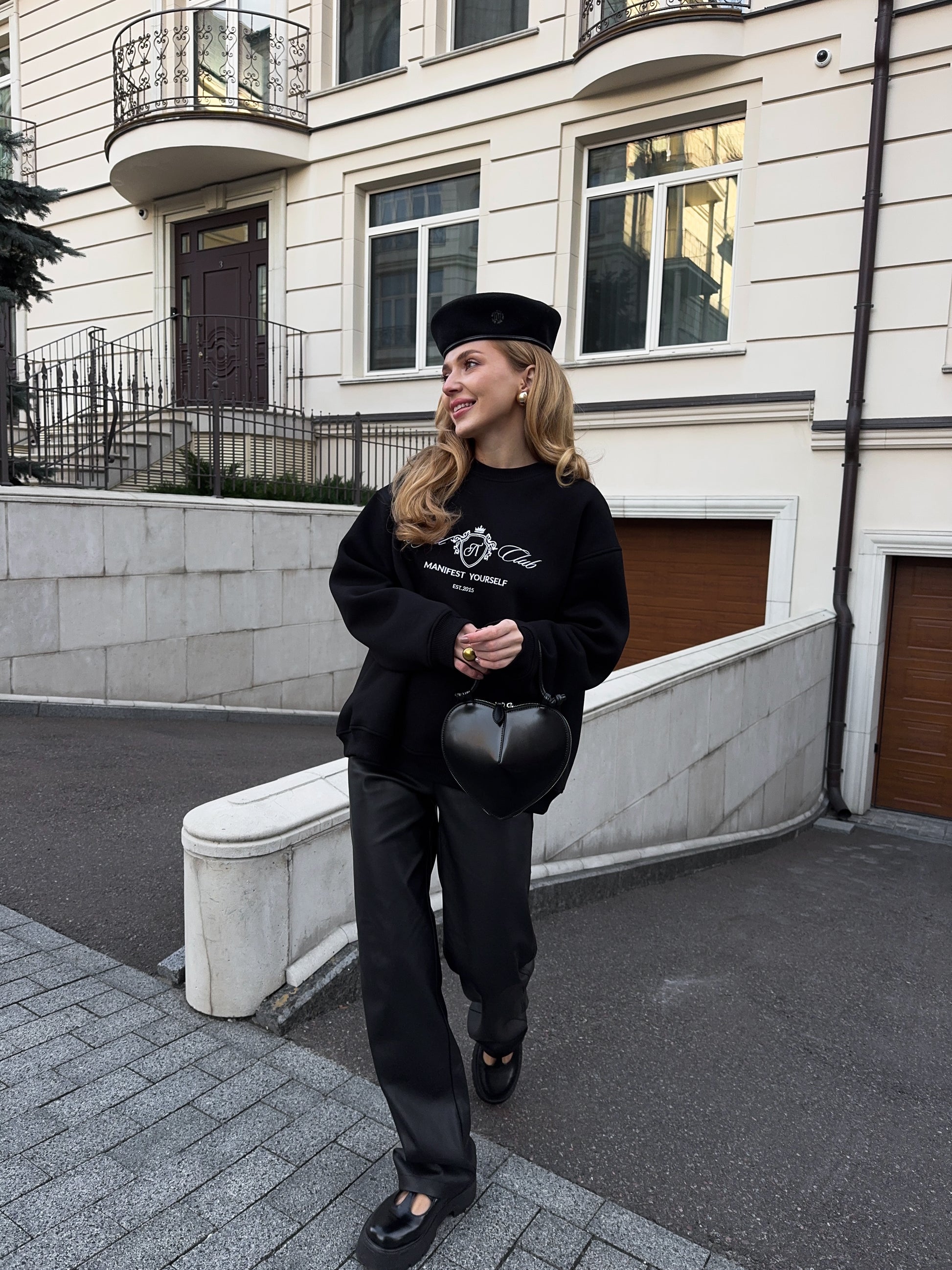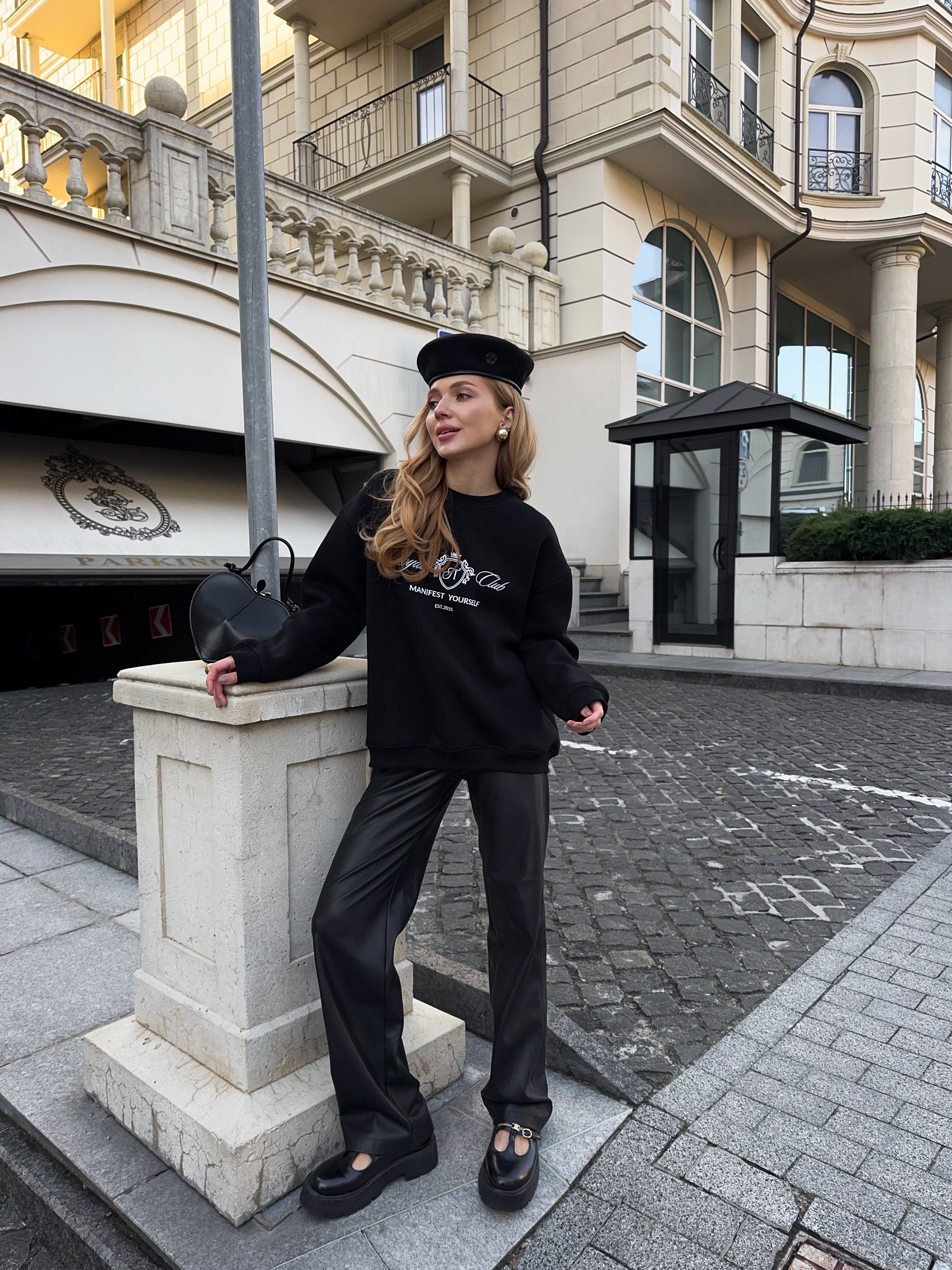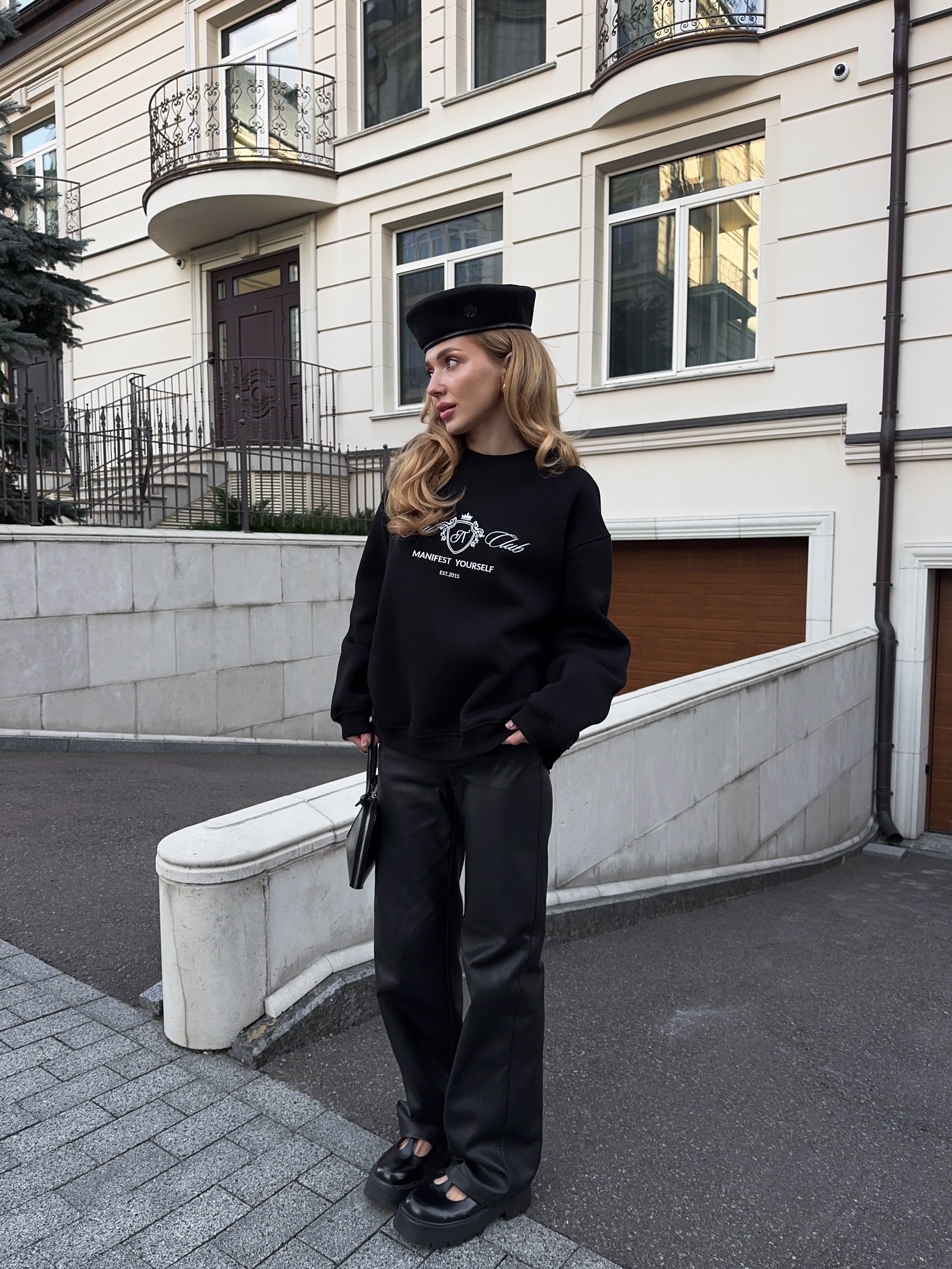 Стильний oversize світшот із обʼємною вишивкою Royal Club – Manifest Yourself створений для комфорту та елегантності у повсякденному стилі.