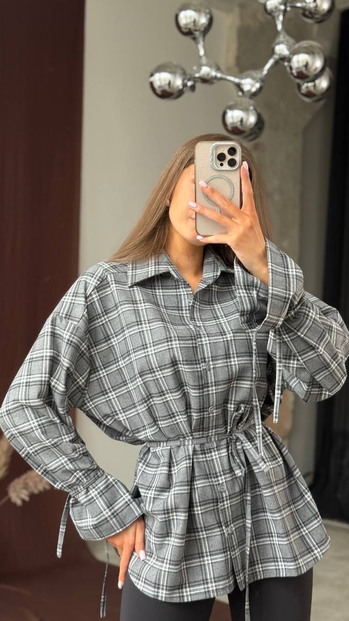 Має зйомні шнурки на рукавах і талії, тож можна легко змінювати силует — від вільного оверсайзу до більш приталеного.