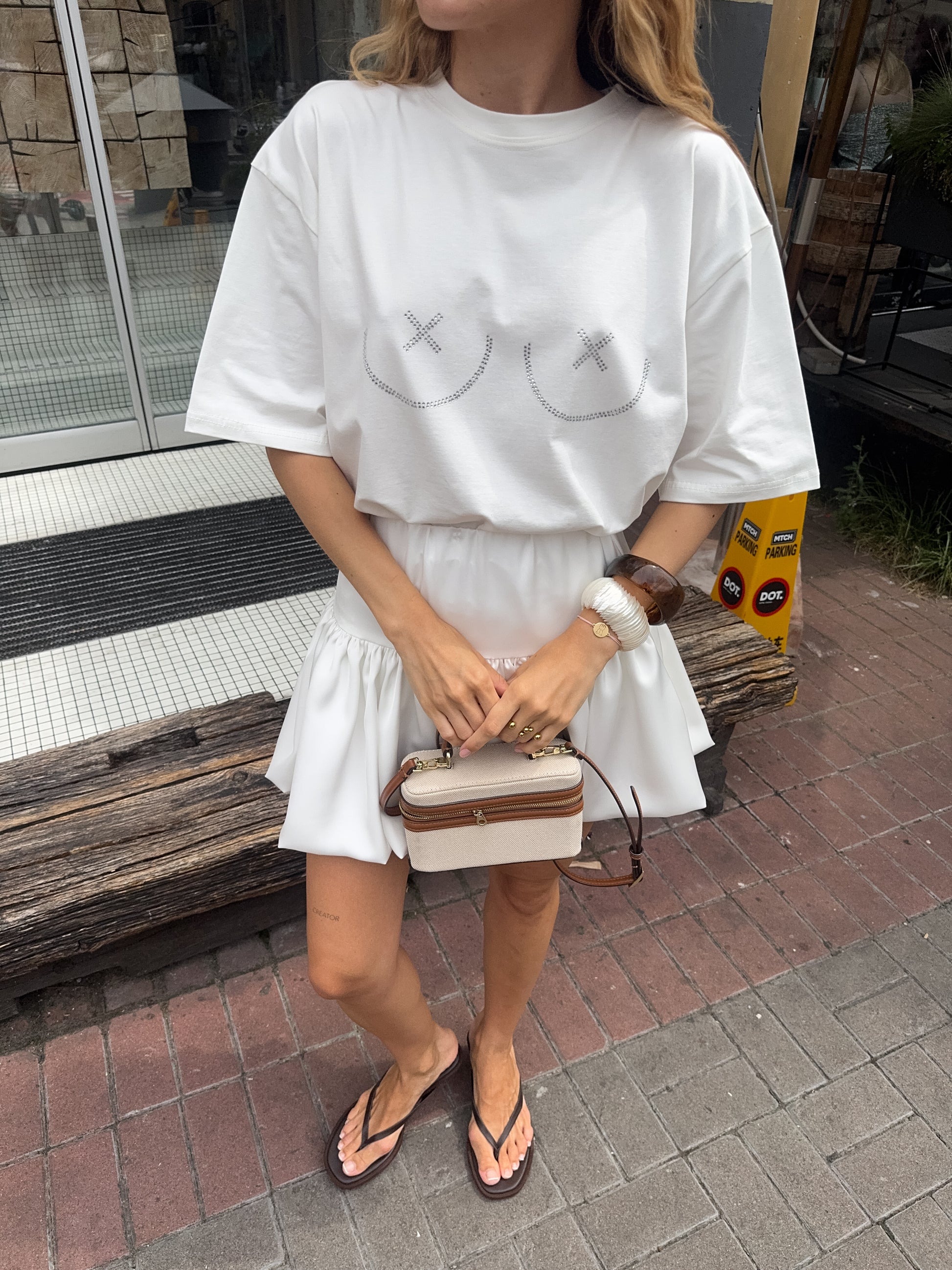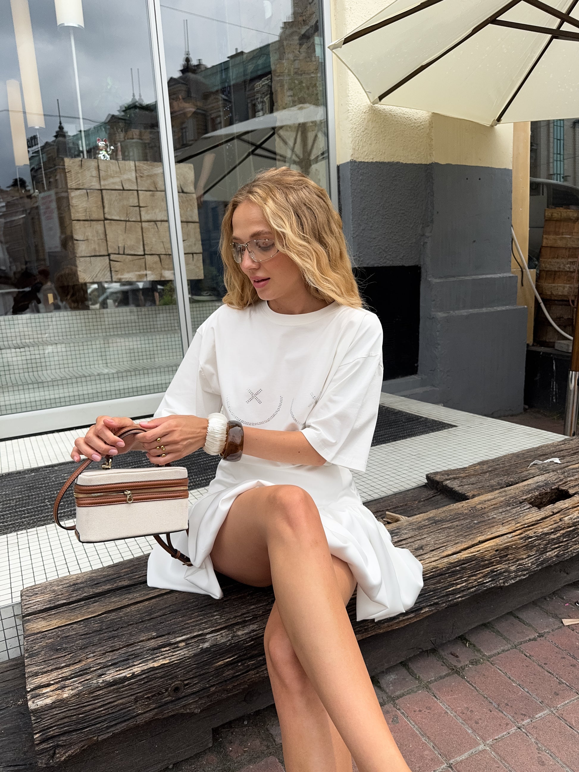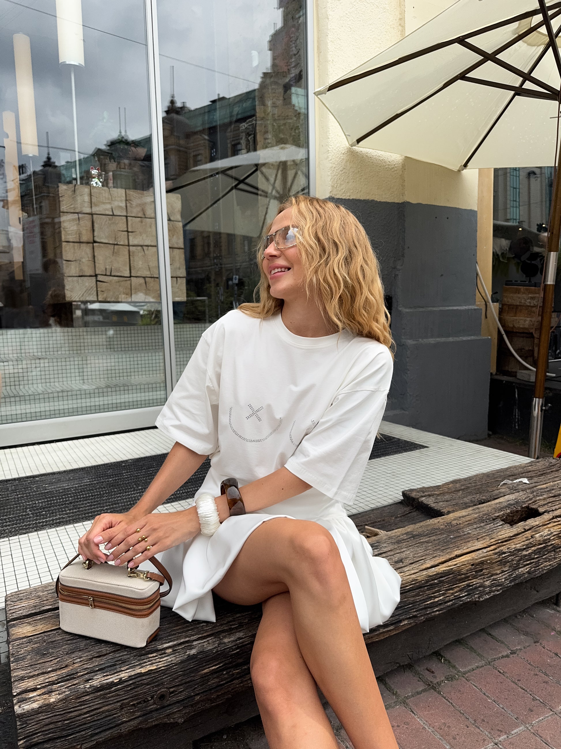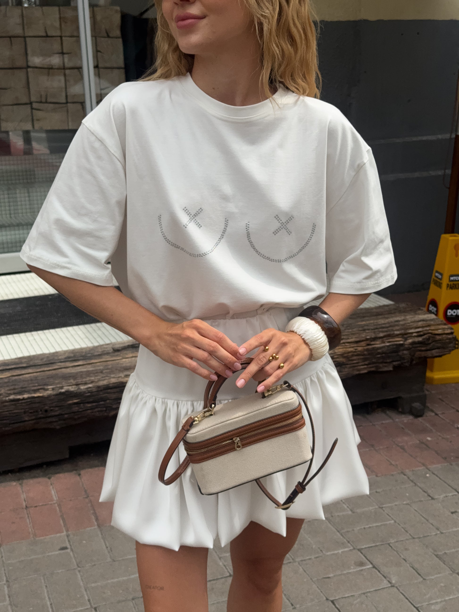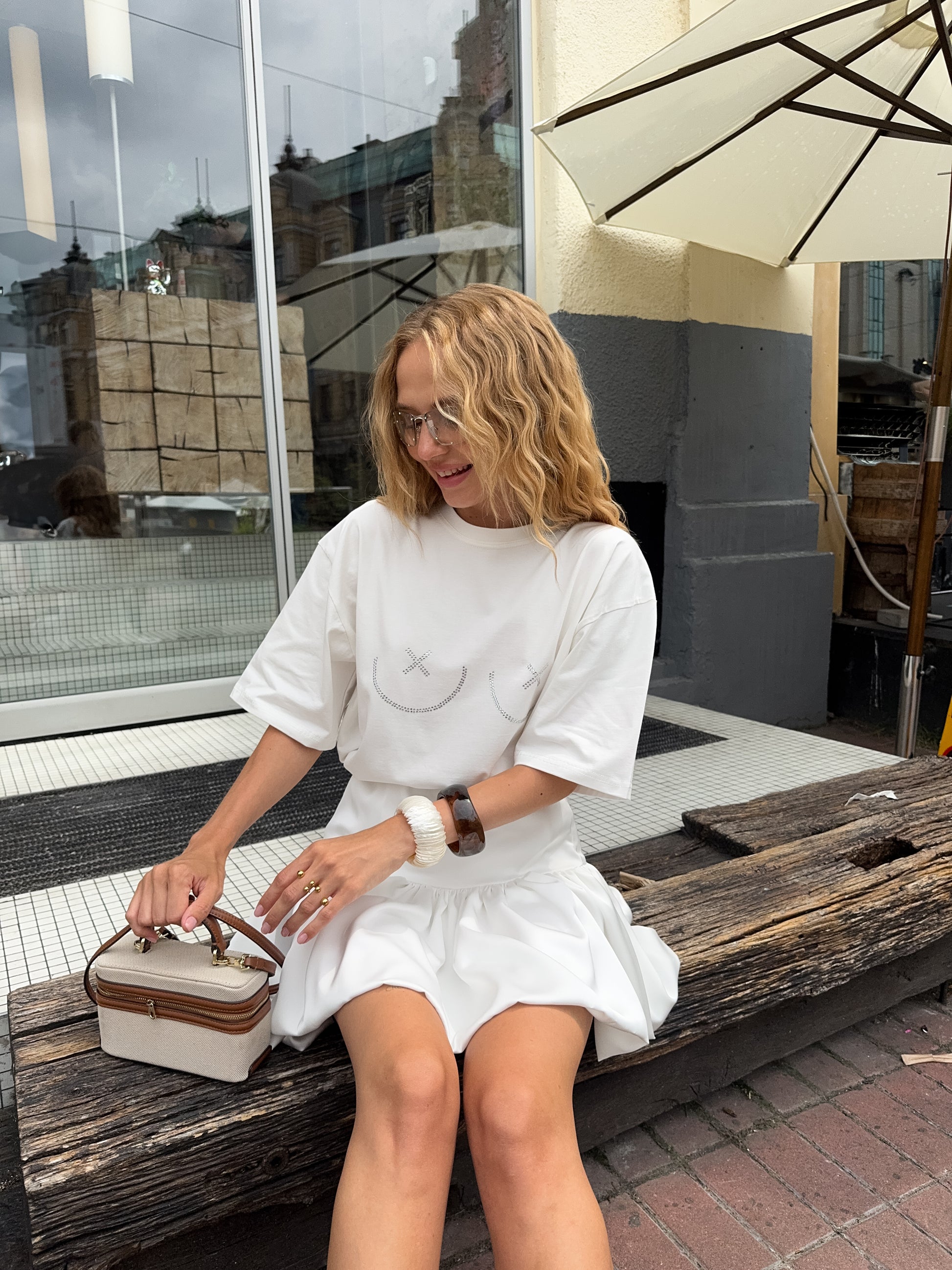 Спідниця міні колокольчик з ніжного сатину молочного кольору
